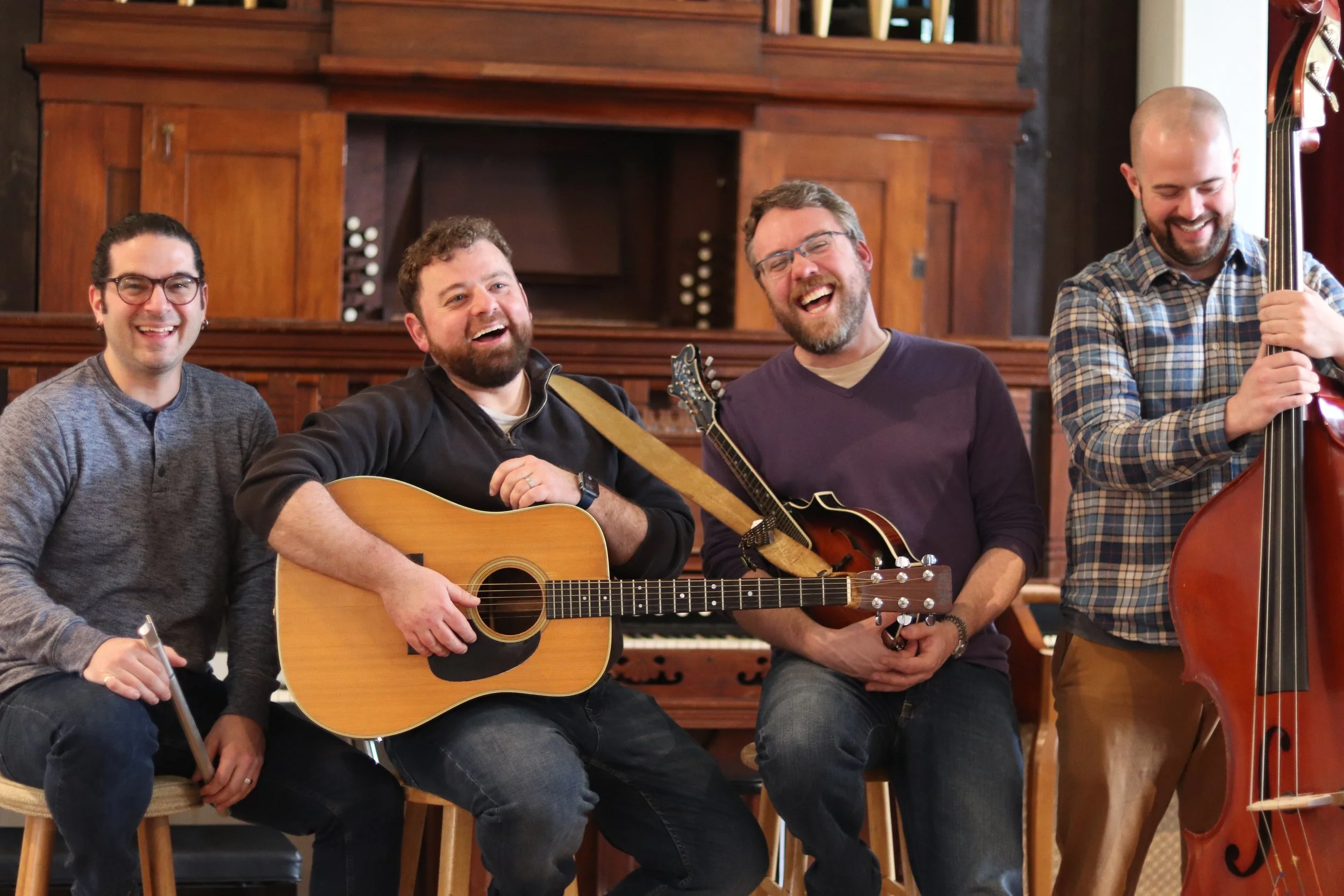 Appealing to traditional and progressive acoustic music fans alike, The Ruta Beggars combine bluegrass and early swing to create a timeless act filled with intricate vocal harmonies, fiery instrumentals, and plenty of fun. They have been praised for their creative yet tasteful arrangements and charming performances. Since 2018 they have brought the joy of their live show to audiences across the US and Canada from festival stages to storied folk listening rooms and as support for legacy acts Lyle Lovett and Ricky Skaggs. The Ruta Beggars are 2019 Thomas Point band competition winners, 2023 IBMA official showcasing artists, Freshgrass Foundation commissioned composers, Freshgrass Award finalists, and Skyline Records artists. The Ruta Beggars are Micah Nicol (guitar), Trevin Nelson (banjo), Noah Harrington (bass), Sam Stage (fiddle), and Jean-Baptiste Cardineau (mandolin).